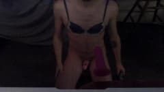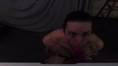 Garoto de lingerie chupa um vibrador em POV
