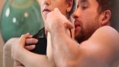 A morena gostosa comprou uma nova lingerie sexy e quis surpreender seu homem indo até ele na sala de estar para lhe dar prazer
