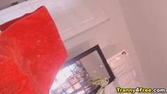 Assista a essa travesti enquanto ela se masturba com seu pau grande, duro e suculento. Ela é uma morena tatuada que adora se divertir!