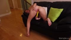 KarupsOW- Melanie Masturba-se em casa Sozinha. Ela vai brincar com o seu vibrador no sofá e vai se deliciar. O sofá irá apreciar a masturbação