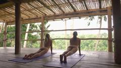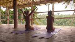 Duas novinhas apos uma foda intensa anoita acordam cedo para fazer yoga juntas nuas para relaxar ainda mais depois da noita passada
