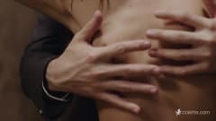 Em tons de cinza, uma morena atada é provocada sem piedade e depois fodida na sua buceta. No fim, um abraço carinhoso para selar esse encontro delicioso