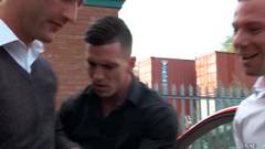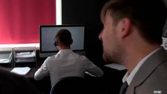 O chefe chega e parabeniza o funcionário. Os colegas não gostam e vão bater nele na rua. Ele terá que chupar seus paus e eles o pegam, no anal.