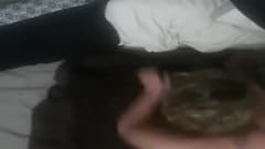 Esta mamãe loira gostosa fode seu homem muito bem enquanto mama em seus seios quentes e os aperta para ter mais prazer.