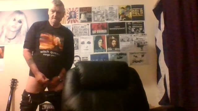 Ele virou sua webcam e tirou suas panelas e deu a si mesmo uma bela masturbação até ejacular, sobre si mesmo