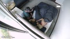 Duas jovens na cama transam com um amigo que acabou de chegar