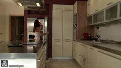 A jovem Betty Rixton é fodida na cozinha por um cara grande