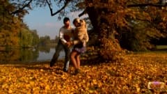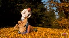 A Marry Queen vai passar suas férias de outono em uma cabana. Seu travesti começa a transar com ela ao ar livre em um lugar romântico