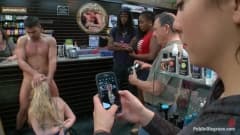 Essa linda mulher loira com um corpo maravilhoso vai ser brutalmente fodida em um bar por vários homens que fazem tudo o que ela precisa sentir.