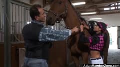 Ela adora cavalos e aprecia o cara que fica de olho neles para trazê-lo para casa e transar com ele quando o marido está fora.