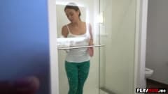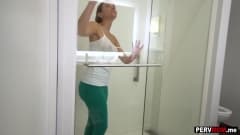 A madrasta latina Havana Bleu, furada por trás em estilo cãozinho por seu grande enteado, que perfurou ela enquanto ela estava limpando