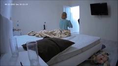 Casal se divertindo ao máximo, transando na cama em diferentes posições. Ela lhe faz um boquete e ele lambe a buceta dela na frente de uma câmera