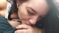 Esta jovem morena com aparelho mostra como ela gosta de chupar o pau no carro e depois engolir todo o seu esperma.