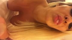 Esta loira se diverte na cama e também no chuveiro enquanto se masturba até esguichar abundantemente.