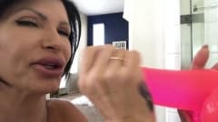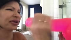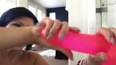 Shay Fox nos mostra o que sabe fazer com um pênis ao colocar seu vibrador na parede e chupá-lo.