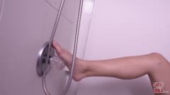 Depois de uma sessão de ioga, essa linda loira decidiu relaxar se masturbando no chuveiro.