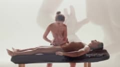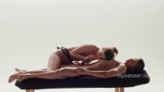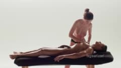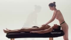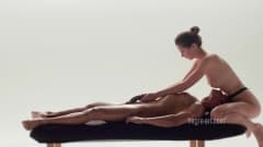 Novinha branquinha gostosa faz uma massagem bem gostosa nua no cara fortão moreno que chupa a busetinha dela de uma forma que nunca vimos