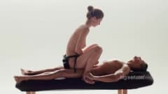 Branquinha fazendo uma massagem bem gostosa no moreno