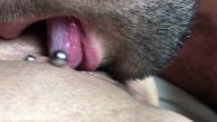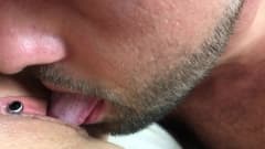 A bela boceta com piercing de Jasmine Jae vai ser lambida pelo namorado. Ele usa a língua com excelência, brincando com o piercing e fazendo-o explodir.