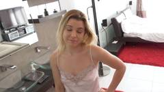 Novinha loira toda exitada, com vontade de fuder gostoso com sua buseta peluda, mas seu namorado não aceitou e ela ficou com mais tesão ainda