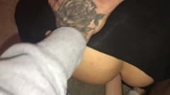 Antes de ser fodida a boazona morena chupa seu pau com as mamas de fora. Ela lambe as bolas dele e faz um grande boquete para ganhar grande foda de canzana