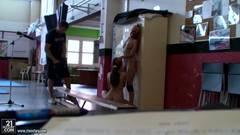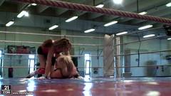 Duas lindas garotas vao lutar corpo a corpo. Ao sentir-se tao perto vão ficar empolgadas e acabam dando uma foda nos vestiários