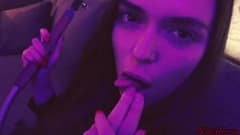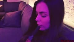 Ela vai aquecer o garoto brincando com ele debaixo da mesa. Ela o levanta e o leva para o banheiro. Ela cai de quatro patas e é fodida!
