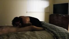 Ela tem enormes mamas redondas que ele não se cansa