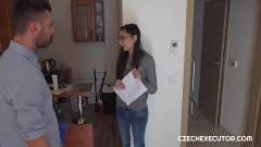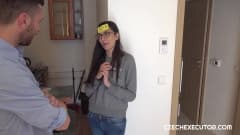 A jovem morena gosta de seduzir o cara que toca sua campainha e o fode com força!