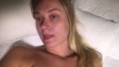 A loira gosta de esfregar a buceta e chegar ao orgasmo com seu vibrador favorito