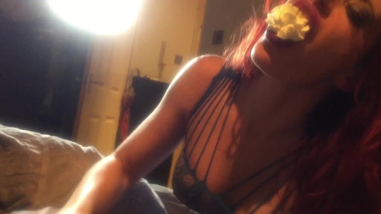 A gostosa cobre o pênis com chantilly e engole tudo.