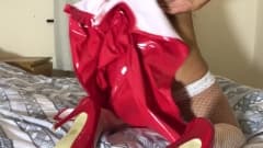 Hannah é uma mamalhuda espetacular no seu vestido vermelho sexy de enfermeira chupa e enfia um dildo no rabo.