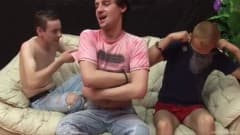 O que é melhor do que um bom trio com amigos num grande e confortável sofá com muita ação pornô gay no processo.