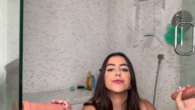 Essa morena é um diabo, com formas generosas. Um não é suficiente para ela, ela precisa de dois vibradores para sentir prazer em sua vagina faminta.