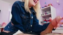 Linda loirinha fazendo um delicioso boquete no seu namorado até espirrar leitinho em sua boquinha. Ela ama fazer sexo oral no seu namorado