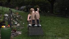 Freya Von Doom e Lena Anderson Equipes Lésbicas, duas lésbicas sensuais e gostosas com mamas pequenas e bonitas se divertindo ao ar livre no quintal