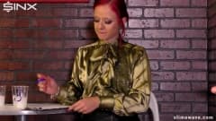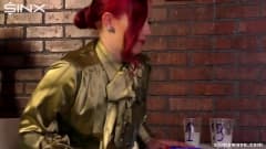 Ela estava tomando seu café sentada à mesa, até que um pênis saiu da parede e entrou em seu corpo, fazendo com que ela quisesse chupá-lo.