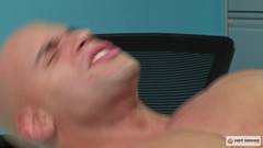 Sean Zevran está curtindo a bunda do amigo Carlos Lindo na mesa do escritório. Esses dois caras corpulentos ficam super ricos sodomizados!