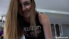 Uma garota safada transa com o pai de sua melhor amiga, que está dormindo tranquilamente no sofá. A amiga vadia de sua filha sempre foi sua paixão.