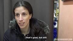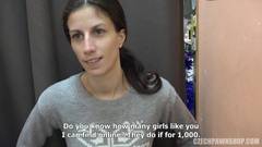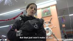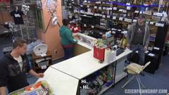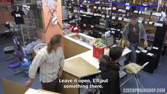 Ela quer dinheiro a todo custo. Ela suga os caras da loja e ganhar algum dinheiro com aquela safadeza. Ela agarra a pila e leva até o fundo da garganta