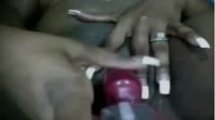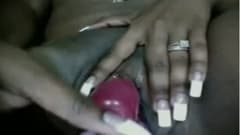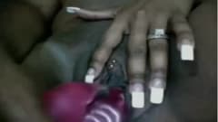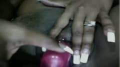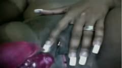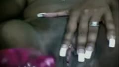 Essa negra tem uma bucetinha enorme e carnuda, né? Aqui a vemos usando um vibrador com um estimulador clitoriano para se masturbar. A não perder.