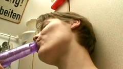 Jovem alemã mija e se masturba com um brinquedo sexual