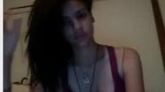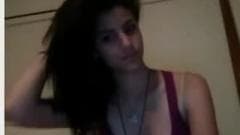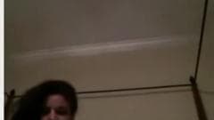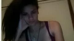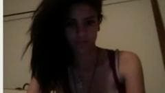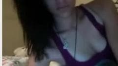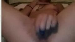 Essa morena está sentada com a buceta de frente para a câmera e está excitada como uma brasa, por isso usa os seus brinquedos e dedos.