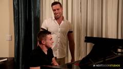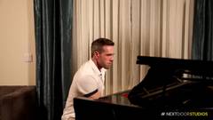 O jovem músico só pensa no galo do professor bonito que o fará relaxar quando comer ele no piano.