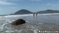 Eles encontraram um lugar vazio na praia e o gostoso estava fazendo um boquete em seu amigo perto da água