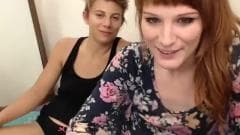 Duas jovens estão se divertindo na frente da câmera. O travesti tem um plug na bunda e a namorada o chupa. Termina com masturbação solo