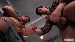 Kurtis Wolfe e Michael Delray, gostam de se masturbar juntos no banheiro público e gozar um para o outro.