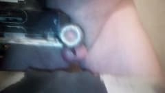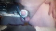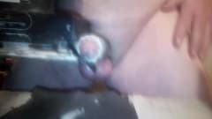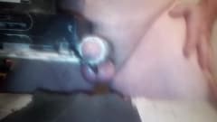 O cara fez este brinquedo sexual sozinho com ferramentas de garagem e usa-o para se masturbar. O masturbador de pau funciona e goza generosamente na mesa!