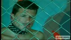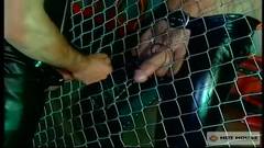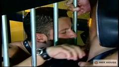 Gunnar Nielsen com Jason Branch e Tristan Paris nessa cena de foda fetichista com gaiolas e correntes.