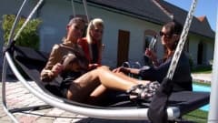 Três amigas, se reuniram na piscina e as coisas esquentaram e se transformaram em um ménage à trois lésbico.